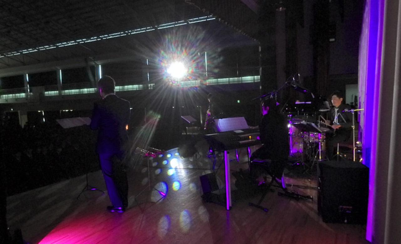 サックス・ドラム・ピアノ・尺八・お箏とエレクトーンの6名構成。